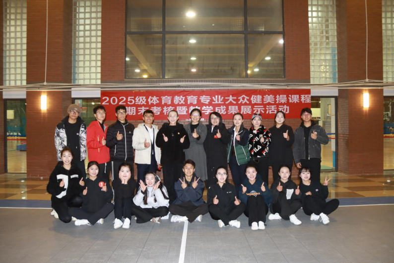 本次考核严格践行“教考分离”教学改革要求,特邀校外健美操专业裁判联合考评组,从动作规范性、艺术表现力、团队协作度等多维度进行客观评分,确保考核结果的公平性与专业性。考核现场化为活力赛场,2025级学子伴随着AI生成的动感旋律依次登场,在自编动作展示中精准呈现肢体控制能力,并借助队形设计软件完成富有创意的编排,巧妙融入灵活多变的队形组合与清晰生动的主题表达。整齐的动作、饱满的热情、灵动的创意,不仅展现了课程学习成果,更体现了学生在AI技术赋能下自主设计、融合创新的实践能力,生动诠释了体育教育专业学子紧跟时代、勇于探索的专业素养与进取精神。